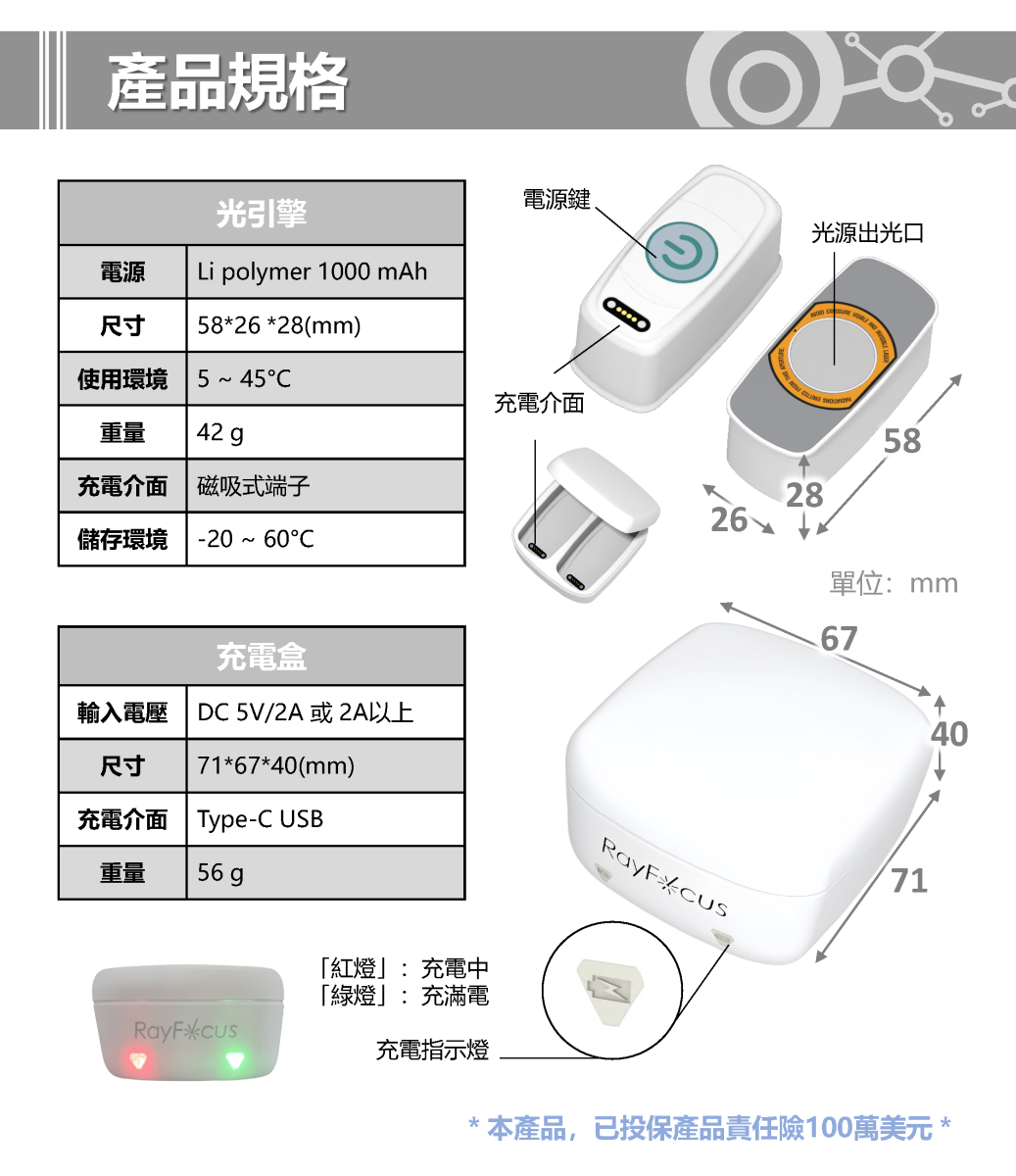 | ★產品壽命?可以使用多久? | 光引擎可防潑水、防汗,但不適用泡水、沖水;若是不摔毀、不泡水,正常使用下壽命可達五年以上 (壽命與鋰電池有關)。 | |